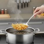aço inox premium, ideal para retirar alimentos de líquidos, escorrer frituras e manipular massas.