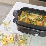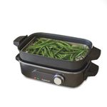 O Grill Multicooker Cook In é tão versátil quanto compacto! É a última palavra em variedade de preparos, cozinhando de 6 maneiras diferentes e substituindo a necessidade de vários aparelhos de cozinha. Na chapa pode-se grelhar carnes e vegetais ou, quando substituída pela grade inoxidável, cozinha facilmente os alimentos no vapor. O recipiente antiaderente de 4,7 litros de capacidade pode ser usado para cozinhar lentamente, assar, grelhar e dourar ou refogar. As temperatura pré-definidas são programadas com o giro de um botão. Nunca foi tão fácil preparar refeições para a família inteira. Grelhe, sele, cozinhe no vapor, cozinhe, refogue e asse; tudo em um multicooker compacto e fácil de limpar Cozimento controlado com precisão, com temperaturas variáveis ??de 90°C a 220°C Recipiente fundo e com tampa de vidro, perfeito para refogar, preparar receitas com molhos ou assar Bandeja de cozimento a vapor em aço inoxidável, para ser usada dentro do recipiente fundo, para cozinhar a vapor de forma rápida e fácil Grelha para um preparo mais saudável e com baixo teor de gordura Tempo de aquecimento rápido – comece a cozinhar em menos de 6 minutos