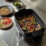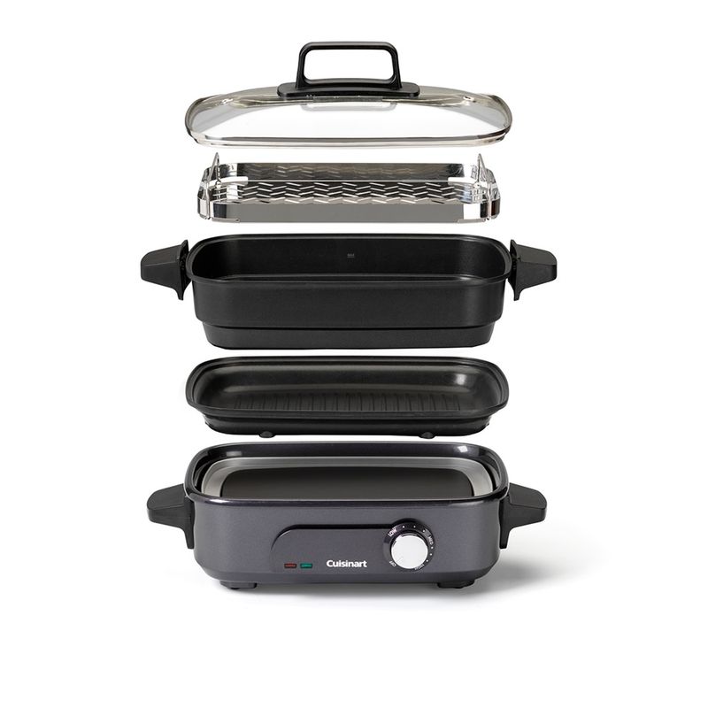 O Grill Multicooker Cook In é tão versátil quanto compacto! É a última palavra em variedade de preparos, cozinhando de 6 maneiras diferentes e substituindo a necessidade de vários aparelhos de cozinha. Na chapa pode-se grelhar carnes e vegetais ou, quando substituída pela grade inoxidável, cozinha facilmente os alimentos no vapor. O recipiente antiaderente de 4,7 litros de capacidade pode ser usado para cozinhar lentamente, assar, grelhar e dourar ou refogar. As temperatura pré-definidas são programadas com o giro de um botão. Nunca foi tão fácil preparar refeições para a família inteira. Grelhe, sele, cozinhe no vapor, cozinhe, refogue e asse; tudo em um multicooker compacto e fácil de limpar Cozimento controlado com precisão, com temperaturas variáveis ??de 90°C a 220°C Recipiente fundo e com tampa de vidro, perfeito para refogar, preparar receitas com molhos ou assar Bandeja de cozimento a vapor em aço inoxidável, para ser usada dentro do recipiente fundo, para cozinhar a vapor de forma rápida e fácil Grelha para um preparo mais saudável e com baixo teor de gordura Tempo de aquecimento rápido – comece a cozinhar em menos de 6 minutos