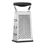 4 faces funcionais para ralar grosso, fino, ultra-fino e fatiar, oferecendo praticidade para diferentes preparos.